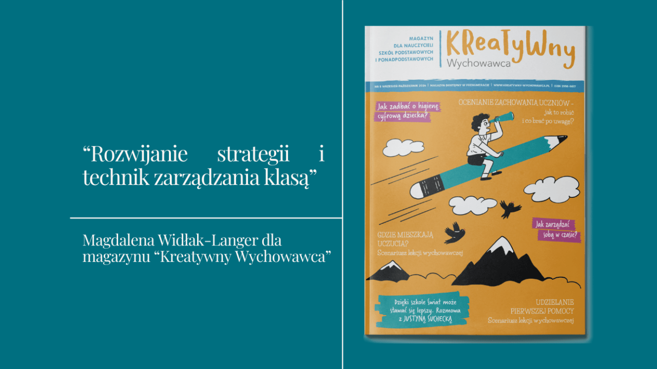 W moim najnowszym artykule pt. “Rozwijanie strategii i technik zarządzania klasą”, który ukazał się we wrześniowo – październikowym wydaniu magazynu Kreatywny Wychowawca, dzielę się praktycznymi strategiami i technikami zarządzania klasą dla nauczycieli, by nie tylko skutecznie przekazywać wiedzę, a także zadbać o właściwe relacje i warunki sprzyjające uczeniu się.