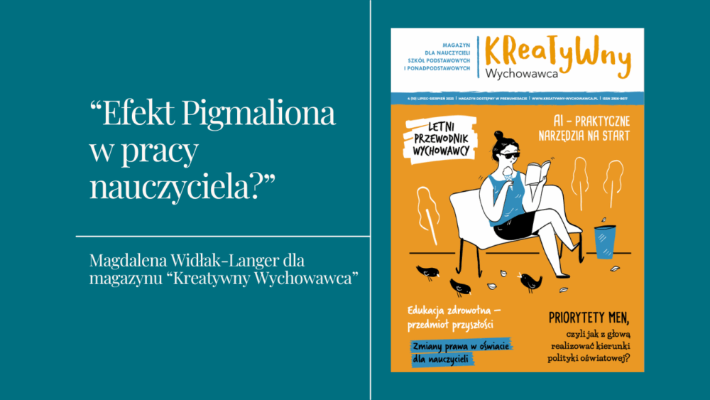 W artykule mojego autorstwa, opublikowanym w numerze magazynu Kreatywny Wychowawca (lipiec–sierpień 2025), przyglądam się efektowi Pigmaliona w praktyce szkolnej. Opisuję, jak postawa osoby nauczycielskiej może wzmacniać poczucie sprawczości osób uczniowskich — albo nieświadomie utrwalać wycofanie i brak wiary w siebie.