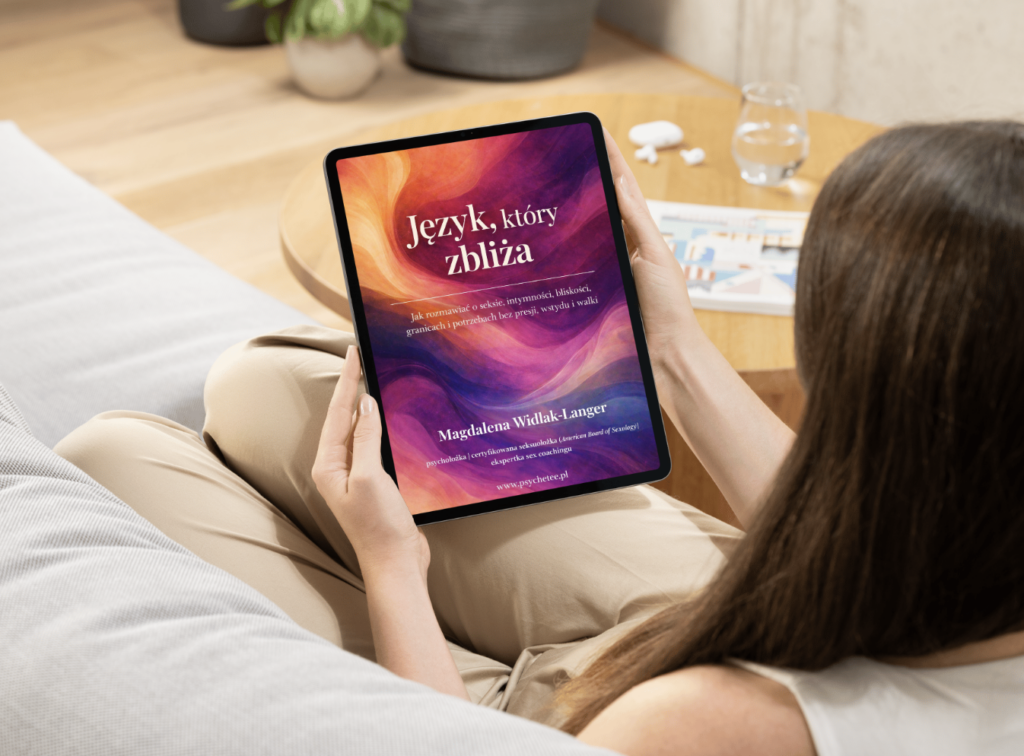 W e-booku „Język, który zbliża. Jak rozmawiać o seksie, intymności, bliskości, granicach i potrzebach bez presji, wstydu i walki” piszę, jak rozmawiać o seksie, granicach i potrzebach tak, by rozmowa budowała bezpieczeństwo i zbliżała, a nie prowadziła do napięcie i oddalenia w relacji.