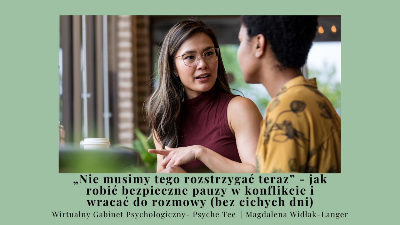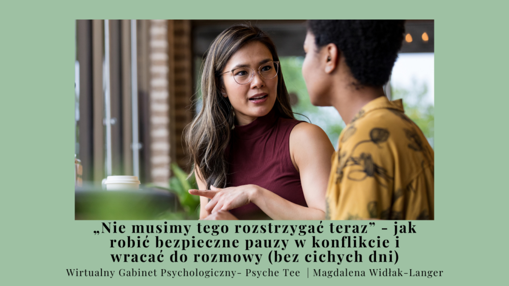 To przerwa po to, żeby zatrzymać zachowania raniące: krzyk, wyzwiska, groźby, szydzenie, poniżanie, presję. Wtedy pauza jest granicą: „nie prowadzę rozmowy w takich warunkach”.