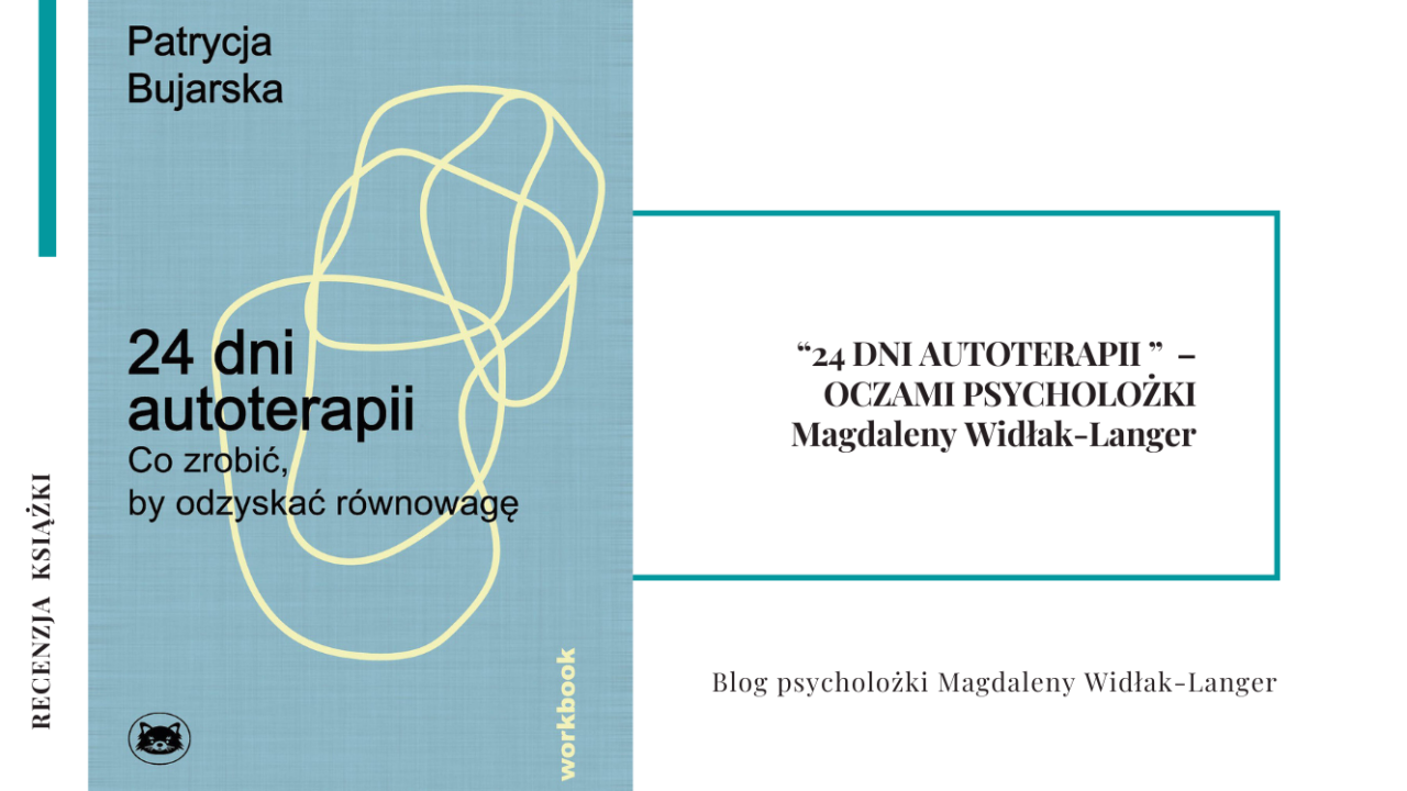 “24 DNI AUTOTERAPII ” Patrycji Bujarskiej oceniam jako wartościową, wspierającą publikację do pracy własnej. Szczególnie dla osób, które przechodzą przez trudniejszy czas i potrzebują łagodnego, uporządkowanego przewodnika po własnym świecie wewnętrznym. Jego siłą jest prostota, struktura, trafny dobór tematów i zaproszenie do refleksji bez moralizowania czy presji natychmiastowej zmiany. Jednak jest to pozycja, która nie przytłacza ilością treści, jak i ilością zadań do wykonania.