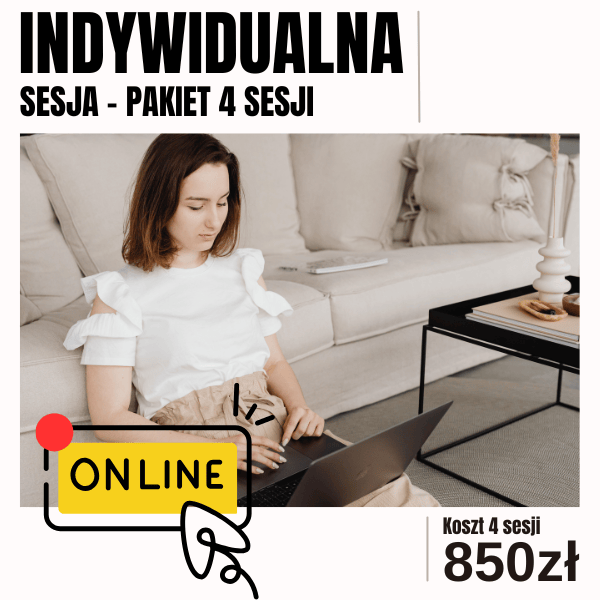 Rozważ Pakiet 4 indywidualnych sesji online, po odbyciu minimum jednej sesji indywidualnej (to pozwala lepiej się poznać i podjąć decyzję czy rzeczywiście chcesz dłuższej współpracy ze mną).